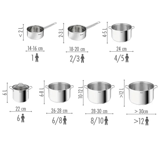 Đối với nồi thân cao và các loại nồi khác, 24 đến 28 cm là lựa chọn tuyệt vời cho gia đình 2-4 người.