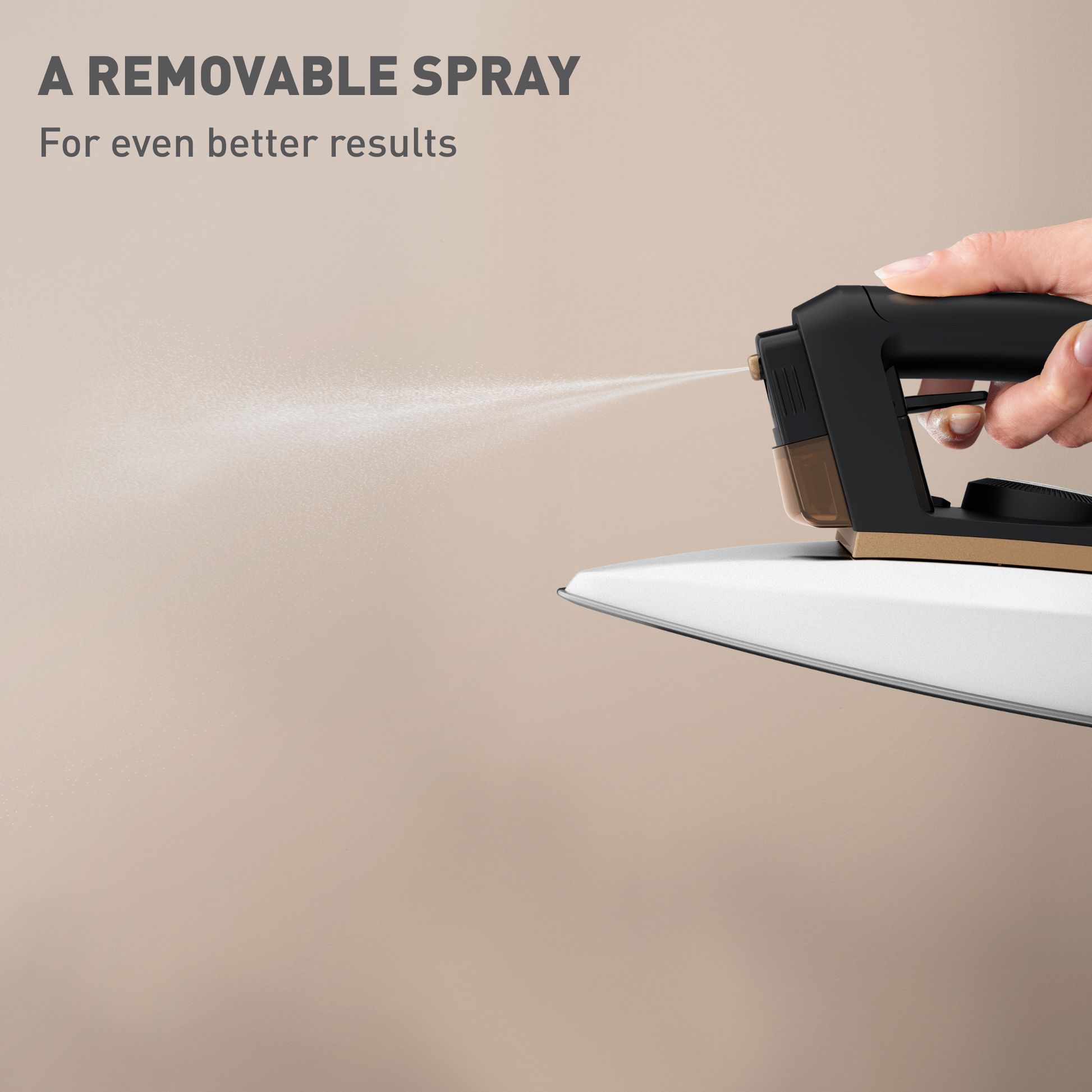 - Luôn trong tầm tay, vòi phun nước tích hợp có thể tháo rời giúp làm phẳng các nếp nhăn cứng đầu một cách dễ dàng.